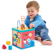 Includes: 1x Wooden Activity Cube, 1x bead maze and 3x wooden shapes