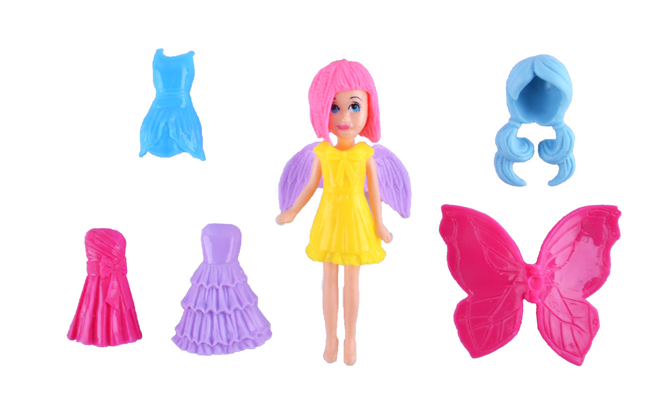 Includes 2 detachable hairstyle, 4 dress, 2 detachable fairy wing.