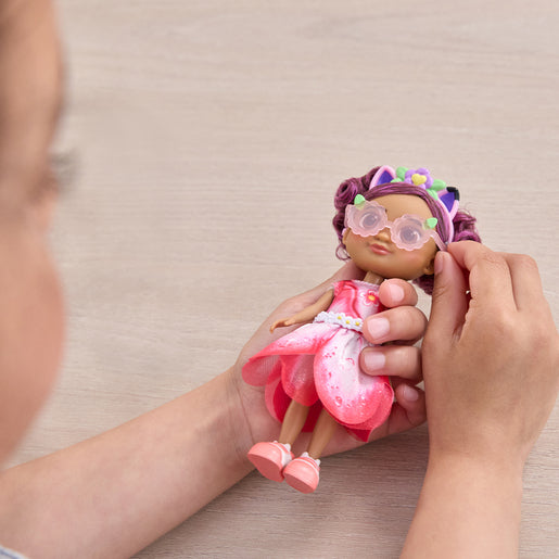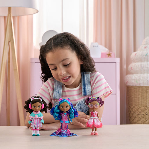This 6-inch Gabby doll has brush-able rooted hair and is dressed in her cat-tastic garden-themed doll clothes. She comes with meow-mazing accessories like her removable cat ears headband, dress, shoes, sunglasses, and flower belt.