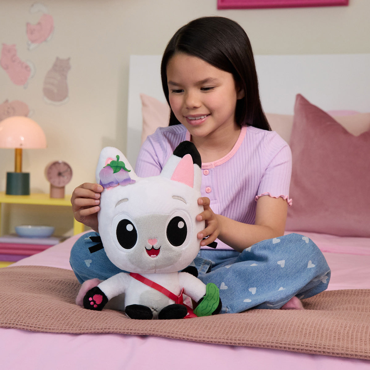 Bring home the magic of Gabbys Dollhouse: The Movie, with the Meow-mazing Interactive Pandy Paws soft toy.