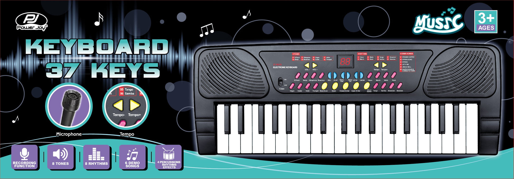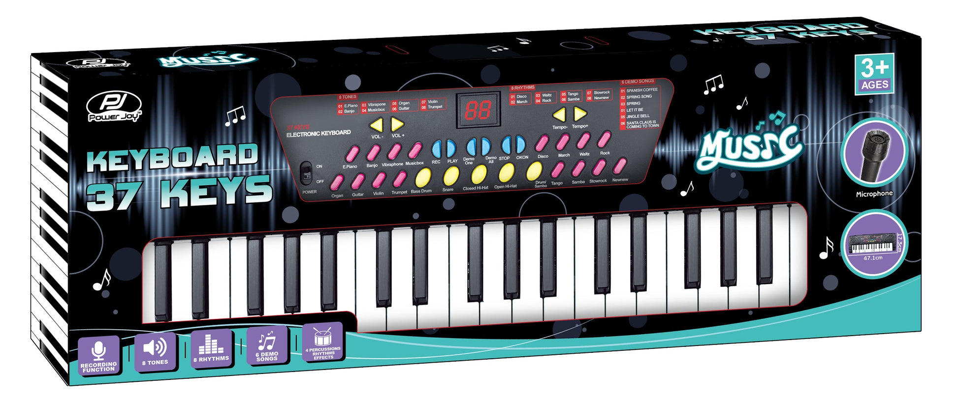 Power Joy Music Keyboard 37 Keys with Mic Battery Operated