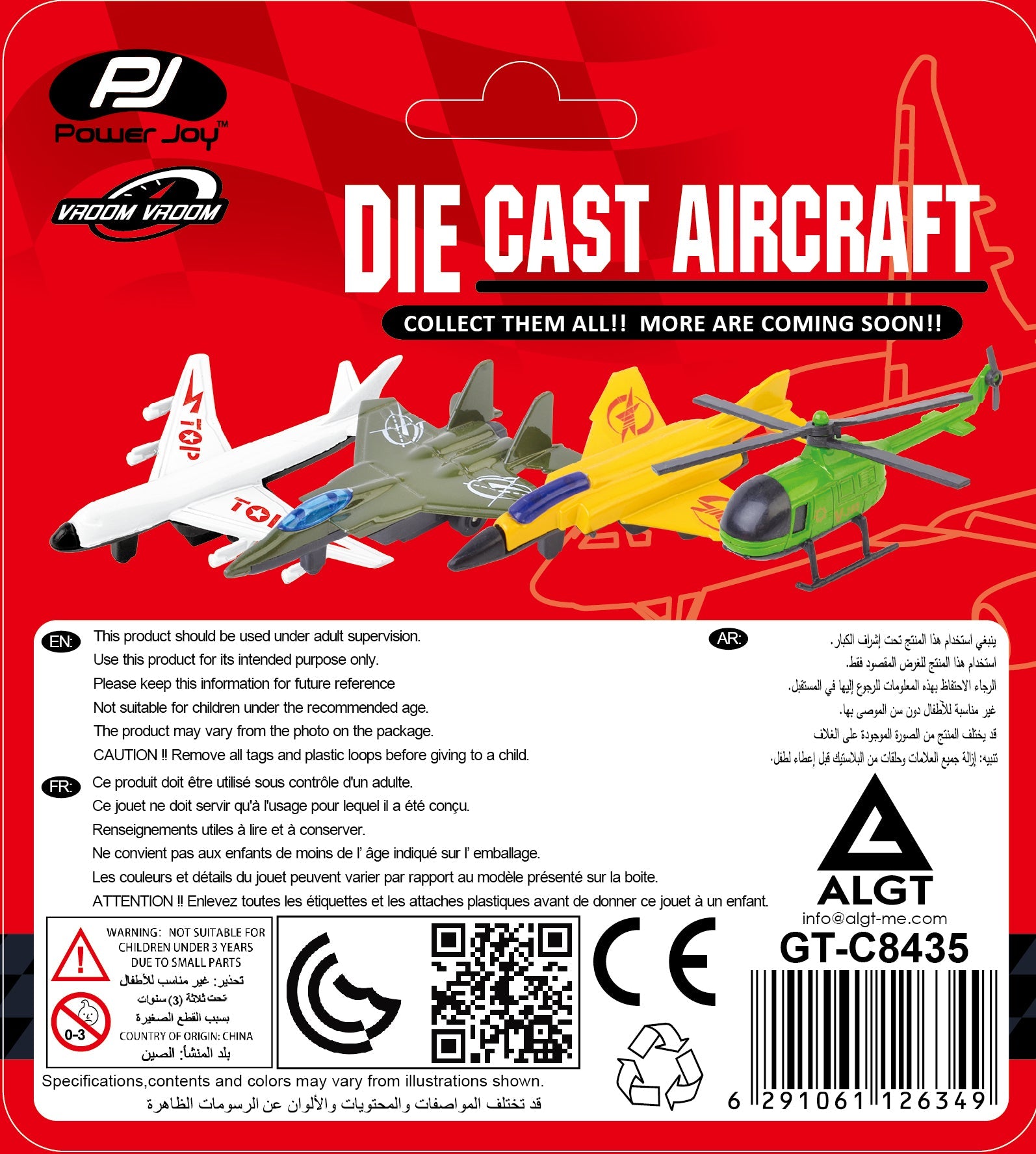 Introducing the Power Joy Vroom Vroom Diecast Aircraft - the ultimate toy for kids who love airplanes! Our toy comes in 9 different assortments, providing a fun and exciting collection for kids. The aircraft is made with certified quality plastic and alloy, ensuring that it's non-toxic and safe for play. Our Vroom Vroom Diecast Aircraft is perfect as a gift for kids. It's a great toy for imaginative play and can be used to recreate exciting aviation adventures