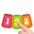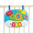 3 light-up piano keys, click-clack fish, rattle spinner, sliding star, push down squeaker, and baby-safe mirror